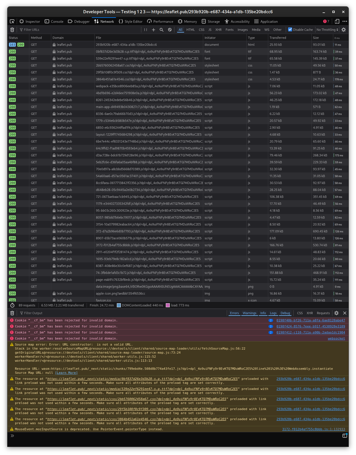 Leaflet pages also seem to be horrifyingly complex under the hood. Like look at all these scripts when I hit F12 on that sample page and reload: